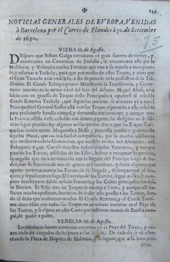 Keywords: Noticiasgeneralesvenidasabarcelona.jpeg es Ejemplar del 30 de septiembre de 1690 del periódico Noticias Generales Venidas a Barcelona Biblioteca Nacional de España Author 1690-09-30 El autor ha muerto hace más de 300 años 1690 in Catalonia PD-old-100 |