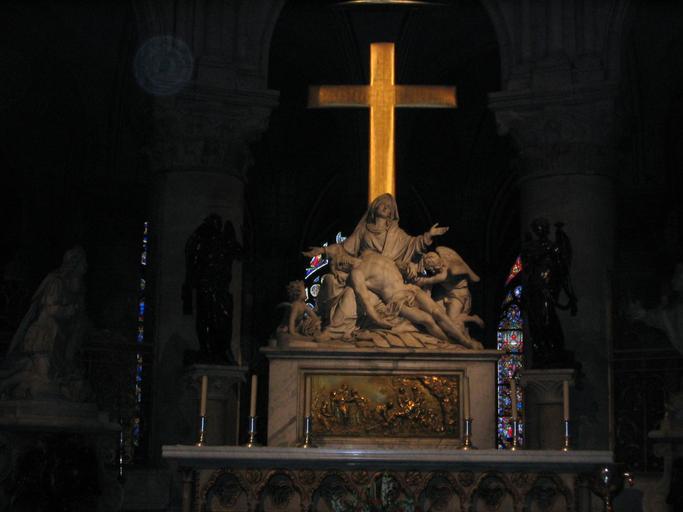 Keywords: Notre Dame statue.jpg en Nicolas Coustou French 1658-1733 Pietà 1723 main altar of Notre-Dame de Paris cathedral Paris France fr Nicolas Coustou Français 1658-1733 Pietà 1723 maître autel de la cathédrale Notre-Dame de Paris avec l'ancien devant d'autel de Vassé représentant la Mise au Tombeau 1744 bronze doré Paris France Photo by User Papertree 2004 User Papertree Marked so per http //en wikipedia org/w/index php title User_talk Shahsagar diff prev oldid 9103102 this edit by the uploader quoted below -- JesseW the juggling janitor 06 19 18 May 2010 UTC The Notre Dame pictures have been taken by myself during my visit to Paris last year I would like to release the pictures into public domain Papertree en Original upload log en wikipedia FtCG page en wikipedia IMG_0121 Notre_Dame_statue jpg wikitable Date/Time Dimensions User Comment - 14 25 25 December 2004 1 600 × 1 200 699 149 bytes Papertree w en <nowiki> The insides </nowiki> Sculptures of Pietà in France Paris Notre-Dame Marble sculptures in Paris Pieta Notre-Dame Sculptures in Notre-Dame de Paris Sculptures in Notre-Dame de Paris 1723 sculptures Pieta Notre-Dame Pietà altar in Notre-Dame de Paris altar 01 Nicolas Coustou 1723 |