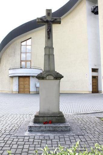 | Keywords: Nový kostel sv. Barbory, kříž.JPG cs Nový kostel sv Barbory Karviná-Louky kříž před kostelem own Hellooo 2013-06-10 New Church of Saint Barbara Louky nad Olší Crosses in Karviná Stone crosses in the Czech Republic Wayside crosses in Karviná District |