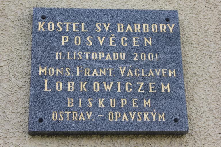 Keywords: Nový kostel sv. Barbory - deska 2.JPG cs Deska na budově Nového kostela sv Barbory Karviná-Louky own Hellooo 2013-06-10 New Church of Saint Barbara Louky nad Olší Plaques in Karviná District