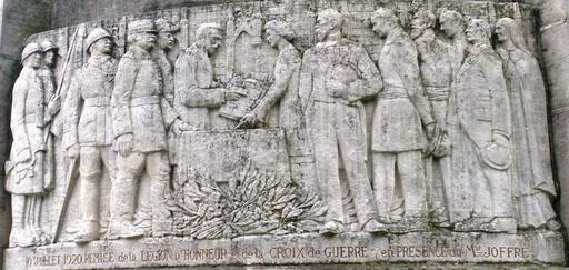 Keywords: Noyon KK.JPG en The relief on the Noyon monument aux morts showing the presentation to Noyon of the Legion d'Honneur and the Croix de Guerre on the 10th July 1920 to commemorate the suffering and fortitude shown by the citizens of Noyon during the German occupation own WeglindeGordon Lawson 2010-06-08 War memorials in Oise Noyon