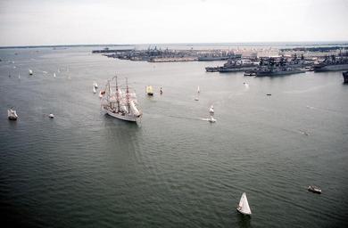| Keywords: NRP Sagres 4.jpeg A Portuguese training ship Sagres A-520 a sailing vessel provides a marked contrast to the Navy's newest nuclear-powered aircraft carrier USS Carl Vinson CVN-70 far end during Harborfest '82 activities defenseimagery mil http //www defenseimagery mil/imagery html guid 36b62a51f4b678d9271805d8f8273b984668e010 DN-SC-83-08227 1982-06-14 PH1 Greg Toon Original work of the US Federal Government - public domain Sagres ship 1937 Ships under sail | ||||