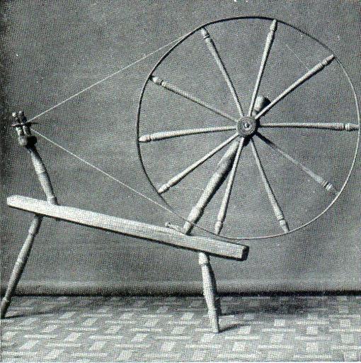 MAKE A MEME View Large Image Story of Wool - spinning wheel.jpg en SPINNING WHEEL This is the old spinning wheel once in use in nearly every farmhouse where they raised their own wool spun their own yarn and made their own cloth with a hand loom With the pin shown ...