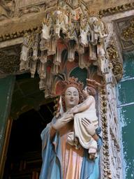 Keywords: Nuestra Señora del Amparo, Catedral de Pamplona.jpg es Puerta del Amparo claustro de la catedral de Pamplona Virgen con el Niño en el parteluz de la portada s XIV own José Luis Filpo Cabana 2016-02 Gothic sculptured portals in Spain Cloister of the Cathedral of Pamplona Gothic sculptures of the Virgin Mary Cc-zero |