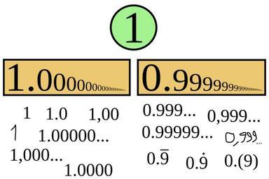 Keywords: Number1.svg Two infinite decimal representation of number 1 own 6 11 2007 Tlep Arithmetic Decimal numbers