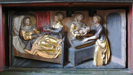 Keywords: Nürnberg St Jakob Hagelsheimer Altar 2.jpg Nürnberg Kirche St Jakob<br /> Hagelsheimer Altar 1516 gestiftet von Sigmund I Held und Leonhard II Held genannt Hagelsheimer; bis 1829 in St Barholomäus Wöhrd; seit 1856 in St Jakob Predella Geburt Mariens own own photograph 2010-04 Photo Andreas Praefcke Own work all rights released Public domain Hagelsheimer Altar St Jakob Nuremberg-St Lorenz Reliefs of Birth of Mary in Germany Photos by User AndreasPraefcke |