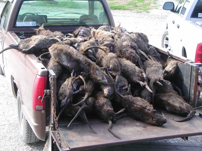 | Keywords: Nutriasicles.JPG en These nutria a k a 'coypus'- <i>Myocastor coypus<i\> were killed as part of a population control program at Rockefeller Wildlife Management Area Louisiana USA They were stored in a freezer for later use in a research project Rockefeller WMA is located in Cameron Parish in western Louisiana on the Gulf of Mexico coast Rockefeller WMA has a variety of fresh intermediate and brackish marshes The management of water flows and salinity is an important tool in maintaining the diverse mixture of marsh for a variety of fish shrimp and waterfowl Nutria by their burrowing activities weaken or compromise the levees that are important in the refuge's water management effort When their populations are high enough nutria can also directly cause marsh loss however their populations rarely get that high at Rockefeller because of the high density of alligators <i>Alligator mississippiensis<i\> The nutria on the back of the pickup were a couple days take by refuge sharp shooters and had been in a freezer for couple months thus 'nutriasickels' I asked the refuge staff to hold onto the nutria so my graduate student Sara DeLozier could remove their eyeballs as part of a study whereby she characterized the population's age distribution by examining lens weight Nutria populations are generally managed by alligators and fur trappers but occasionally shooting becomes necessary when the nutria populations get too large or are too concentrated around the levee structures or marsh restoration sites Nutria have become an integral part of the biological community along coastal Louisiana and are an important food source for alligators U S Geological Survey Jacoby Carter text Sergio Merino photographer 2004-02-03 29°39'14 N 92°43'4 W PD-USGov Invasive animals 2004 in Louisiana Mammals of Louisiana Myocastor coypus as invasive pest Dead rodents Rockefeller Wildlife Management Area Biology research Rodent control |