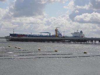 Keywords: NWO-Pier 1.JPG de Die Tankerlöschbrücke der NWO-Ölleitungsgesellschaft in Wilhelmshaven Daran der Tanker Alyarmouk 116 000 tdw beim Löschen von 80 000 t Erdöl Zeitungsmeldung Im Vordergrund bereitliegende Ölbarrieren Tanker pier of the NWO pipeline company at Wilhelmshaven The tanker Alyarmouk 116 000 tdw is berthed to unload 80 000 t crude oil newspaper report In the foreground ready to use oil barriers Own KuK 2009-06-12 PD Heppenser Groden NWO Pier Wilhelmshaven Oil tankers Ships in Wilhelmshaven |