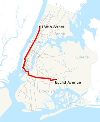 Keywords: NYCS map C.svg This is a map showing the New York City Subway's C service It was created with TIGER/Line GIS data water and boundaries and my own data subway lines and stations traced on TIGER/Line road data If you would like a copy of the subway data email me NYC Subway service maps C 2007-05-01 own assumed NE2 |