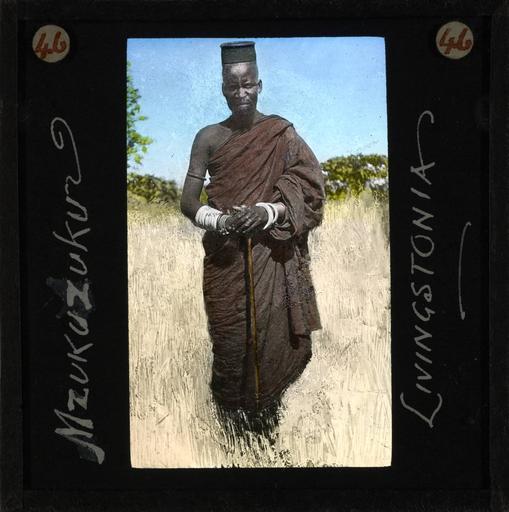 Keywords: "Nzukuzuku, Livingstonia" Malawi, ca.1895 (imp-cswc-GB-237-CSWC47-LS3-1-046).jpg en <br> Nzukuzuku Livingstonia Malawi ca 1895 Full length photograph of a man likely of the Ngoni people The man is dressed in red robes wears arm rings and carry's a stick ; The Ngoni people are an ethnic group living in Malawi Mozambique Tanzania and Zambia Their origins can be traced to the Zulu people of kwaZulu-Natal in South Africa Photographer Unknown Filename imp-cswc-GB-237-CSWC47-LS3-1-046 tif Coverage date circa 1895 Part of collection International Mission Photography Archive ca 1860-ca 1960 Type images Part of subcollection Photographs from the Centre for the Study of World Christianity University of Edinburgh U K ca 1900-ca 1940s Repository name Centre for the Study of World Christianity Archival file impaunpub_Volume7/1432 url Repository address The University of Edinburgh School of Divinity New College Mound Place Edinburgh EH1 2LX United Kingdom Geographic subject country Malawi Format aacr2 1 lantern slide 8 x 8 cm Geographic subject continent Africa Rights Contact the repository for details Part of series Elmslie of the Wild Ngoni LS3/1 Repository email divinity-CSWC ed ac uk Subject lcsh Keyword Ethnic costume Date created circa 1895 Publisher of the digital version University of Southern California Libraries Subject aat genre portraits Format aat lantern slides Legacy record ID impa-m68442 Access conditions http //www ed ac uk/schools-departments/divinity/research/centres/world-christianity/collections-resources File GB 237 CSWC47/LS3/1/46 1895 author http //digitallibrary usc edu/cdm/ref/collection/p15799coll123/id/64553 PD-old-70-1923 Magic lantern images Images from USC Digital Library uploaded by Fæ International Mission Photography Archive ca 1860-ca 1960 |