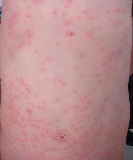 Keywords: Oak processionary rash.JPG Oak processionary caterpillar rash own Kwouters001 cc-zero Thaumetopoea processionea Parasitic infestations stings and bites of the skin Insect bites