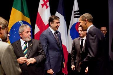| Keywords: Obama&Saakashvili2010.jpg  en President Barack Obama talks with President Mikheil Saakashvili of Georgia at the Nuclear Security Summit at the Washington Convention Center in Washington D C April 13 2010 http //www whitehouse gov/the-press-office/president-obama-s-discussion-with-president-mikheil-saakashvili-georgia The White House Official White House Photo by Pete Souza 2010-04-13 Mikheil Saakashvili Barack Obama with national leaders 2010 Nuclear Security Summit Source http //www whitehouse gov/the-press-office/president-obama-s-discussion-with-president-mikheil-saakashvili-georgia The White House PD-USGov  |