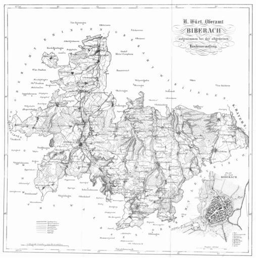| Keywords: Oberamt Biberach Karte.jpg Dies ist ein Scan des Buches This is a scan of the book Beschreibung des Oberamts Biberach Cotta Stuttgart und Tübingen 1837 Scan der Faksimileausgabe Scan of the facsimile edition Bissinger Magstadt 1974 ISBN 3-7644-0013-7 1837 Prof Johann Daniel Georg von Memminger 1773-1840 PD-old Oberamt Biberach Old maps of Baden-Württemberg |