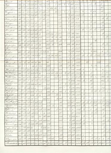 | Keywords: Oberamt Blaubeuren Tabelle 2c.jpg This is a scan of the book Beschreibung des Oberamts Blaubeuren Cotta Stuttgart und Tübingen 1830 Deutsch Dies ist ein Scan des Buches Beschreibung des Oberamts Blaubeuren Cotta Stuttgart und Tübingen 1830 reprint 1976 by Horst Bissinger KG Verlag und Druckerei Magstadt Beschreibung des Oberamts Blaubeuren Cotta Stuttgart und Tübingen 1830 Prof Johann Daniel Georg von Memminger 1773-1840 PD-old Oberamt Blaubeuren | ||||