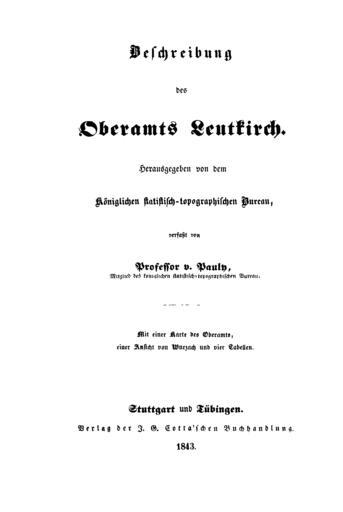 | Keywords: Oberamt Leutkirch 000 Titel.png <div style font-size 150 align left > 50 - 3 - 25 align left <<< previous 25 align center 25 align right next >>> - 3 </div> Dies ist ein Scan des Buches This is a scan of the book Beschreibung des Oberamts Leutkirch Scan eines Faksimiles Magstadt 1976 ISBN 3-7644-0018-8 Scan from a reprint edition Magstadt 1976 ISBN 3-7644-0018-8 1843 August Friedrich Pauly 1796 “1845 Der Text ist gemeinfrei da der Autor vor mehr als 70 Jahren verstorben ist Public Domain as author died more than 70 years ago PD-old Beschreibung des Oberamts Leutkirch |