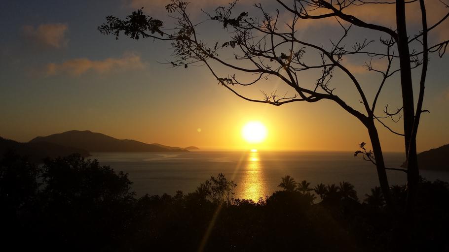 Keywords: ocean sunrise australia whitsundays tree reflection