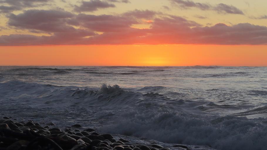 Keywords: ocean sunset waves sea nature sunset background orange clouds kommetjie south africa