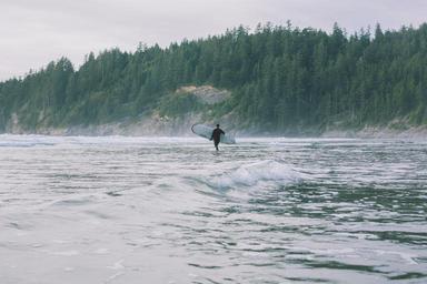 Keywords: ocean surf surfer board surfboard pine trees waves water sea surfing sport nature outdoor active surf board man adventure