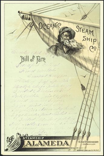 View Original:Oceanic_Steam_Ship_Company_:Steamship_Alameda,_K_Van_Oterendorp,_commander._Bill_of_fare._[Sunday_April_25,_1897?]._Schmidt_Label_&_Lith_Co._S.F._[1897?].jpg (3632x5408)