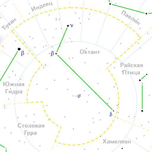 | Keywords: Octans constellation map ru lite.png en Octans constellation map on Russian ru Ка та созвездия Октанта на усском языке It was created using the program PP3 At http //pp3 sourceforge net PP3's homepage you also get the input scripts necessary for re-compiling the map The yellow dashed lines are constellation boundaries the red dashed line is the ecliptic and the shades of blue show Milky Way areas of different brightness The map contains all Messier objects except for colliding ones The underlying database contains all stars brighter than 6 5 All coordinates refer to equinox 2000 0 The map is calculated with the equidistant azimuthal projection the zenith being in the center of the image The north pole is to the top The horizontal lines of equal declination are drawn for 0° +10° +20° etc The lines of equal rectascension are drawn for all 24 hours Towards the rim there is a very slight magnification and distortion own 2006-10-17 Denis Ibaev Constellations maps russian |