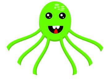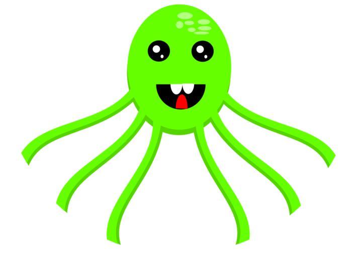 Keywords: octopus octopede kraken sea life animal green comic cartoon face happy cute ocean sea seafood tentacles