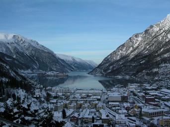 | Keywords: Odda i februar 2004.jpg Centre of Odda municipality Odda town photographed in february 2004 by Gunleiv Hadland also the uploader Odda is a municipality in Hordaland Norway The fjord Sørfjorden in the background 2004-02-01 own assumed Gunnernett Odda town Riksveg 13 Hordaland Sørfjorden |