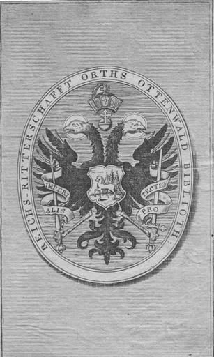 | Keywords: Odenwald ritterkanton exlibris.jpg Reichsritterschaftliche Bibliothek Ottenwald Eigner Im Hochoval auf gestricheltem Grund die Umschrift Reichs-Ritterschafft Orths Ottenwald Biblioth mittig der deutsche Doppeladler dessen Brustschild ein vor drei Pappeln schreitendes Pferd zeigt flankiert von Schwertern mit Band und Inschrift Imperialis protectio darĂ¼ber Krone und Reichsapfel um 1680 166 x 100 mm Kupferstich - vgl Warnecke 1528 leicht abweichende Beschreibung Siehe auch http //diglib hab de/ grafik exlib-berlepsch-18-1-00167 http //www antiquariat de/showmedia jsp;jsessionid F977C576EDF7227700117153A05D6FDA id 18846833 u 1 orig 1 head 2 Antiquariat Wolfgang Rieger Freiburg 1680 author PD-old Knight Cantons of the Holy Roman Empire |