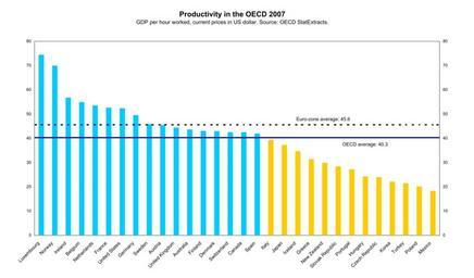 MAKE A MEME View Large Image OECD Productivity levels 2007.svg en Productivity comparison for the member states of the OECD Productivity is Gross Domestic Product GDP per hour worked as measured in US dollars Lines for the OECD average and the Euro-zone average shown ...