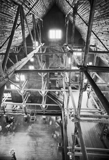 Keywords: OF Inn view from Crowsnest HABS1.jpg en View from the Crowsnest platform at the top of the Old Faithful Inn's lobby Yellowstone National Park Wyoming USA http //memory loc gov/pnp/habshaer/wy/wy0000/wy0093/photos/174615pv jpg W S Keller HABS photographer 1931-03 PD-USGov-Interior-HABS 73000226 Old Faithful Inn |