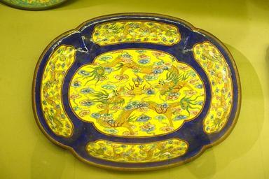 | Keywords: Offering dish for royal domestic use in Hue, Nguyen dynasty, 19th to early 20th century, enamel on bronze - National Museum of Vietnamese History - Hanoi, Vietnam - DSC05629.JPG en Exhibit in the National Museum of Vietnamese History Hanoi Vietnam Photography was permitted in the museum without restriction This artwork is old enough so that it is in the public domain 2014-08-06 03 32 26 own Daderot other versions cc-zero Bronze in the National Museum of Vietnamese History Uploaded with UploadWizard |