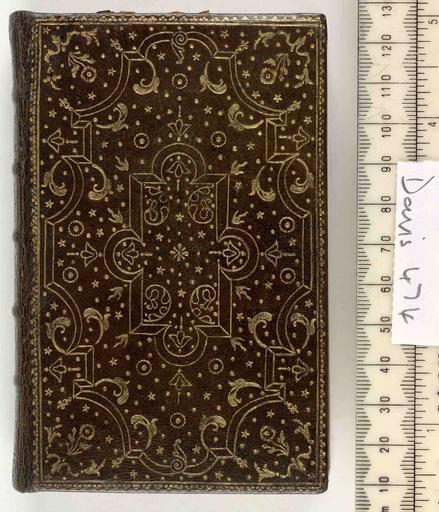 | Keywords: Office de la semaine sainte - Upper cover (Davis474).jpg Style All over design Pointille comprising dots Floral; Caption Upper cover; Colour Brown; Edge Gilt exhibition history Decorative Technique Tooled in gold; Cover Material Goatskin includes morocco turkey etc 3 ribbon markers 2 red 1 blue With a green goatskin slip case signed R Wallis Binder object history Text 1707; Paris; Unspecified object type Cc-zero place of creation Binding France place of discovery See M M Foot The Henry Davis Gift vol I London 1978 p 202 n21 Also Henry Davis Gift vol III British Library image http //www bl uk/catalogues/bookbindings/LargeImage aspx RecordId 020-000004148 ImageId ImageId 41679 Copyright BL Office de la semaine sainte Uploaded with GWToolset Office de la semaine sainte - Upper cover Davis474 http //www webarchive org uk/bldatasets/bindings/6195_4 jpg Bookbinding 18th-century bookbinding British Library Bookbindings |