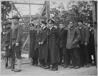 | Keywords: nara:arcid=533462 national archives nationalarchives b/w bw world war i worldwari german submarine u.s.s. fanning ussfanning captured monochrome people blackandwhite outdoor black and white Original Caption: Officers and crew of the German submarine U.58, captured by the U.S.S. Fanning, entering the War Prison Camp at Fort McPherson, Georgia. Mathewson & Winn., 04/1918 U.S. National Archives’ Local Identifier:165-WW-A161(4) From: American Unofficial Collection of World War I Photographs, compiled 1917 - 1918 (Record Group 165) Created By: War Department. (1789 - 09/18/1947) Production Date:04/1918 Persistent URL: arcweb.archives.gov/arc/action/ExternalIdSearch?id=533462 Repository: NARA's Still Picture Records Section, National Archives at College Park (College Park, MD) Access Restrictions: Unrestricted Use Restrictions: Unrestricted Original Caption: Officers and crew of the German submarine U.58, captured by the U.S.S. Fanning, entering the War Prison Camp at Fort McPherson, Georgia. Mathewson & Winn., 04/1918 U.S. National Archives’ Local Identifier:165-WW-A161(4) From: American Unofficial Collection of World War I Photographs, compiled 1917 - 1918 (Record Group 165) Created By: War Department. (1789 - 09/18/1947) Production Date:04/1918 Persistent URL: arcweb.archives.gov/arc/action/ExternalIdSearch?id=533462 Repository: NARA's Still Picture Records Section, National Archives at College Park (College Park, MD) Access Restrictions: Unrestricted Use Restrictions: Unrestricted |