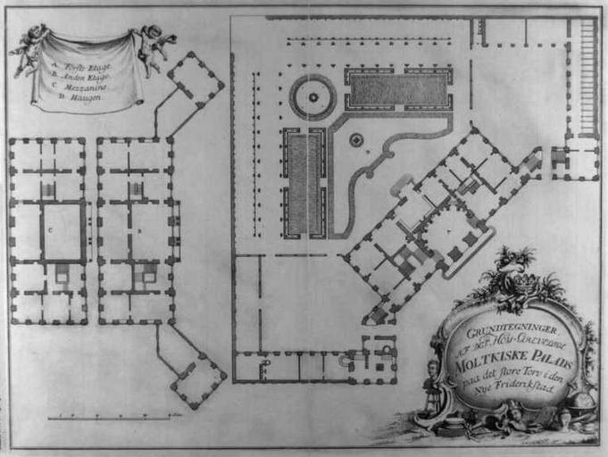 Keywords: OH Lode Moltkes Palais.jpg en Plans of Moltkes Palæ part of Amalienborg Copenhagen Royal Library Copenhagen Odvardt Helmoldt von Lode c 1720-1757 ~ 1755 expired copyright PD-old Amalienborg Palace Collections of The Royal Library Denmark