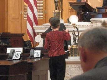 Keywords: Ohio Electoral College 2012 7.JPG en Meeting of the Ohio Electoral College The teller reports the vote own Ibagli 2012-12-17 Cc-zero United States presidential election 2012 Ohio Statehouse