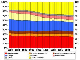 | Keywords: Oil consumption per day by region from 1980 to 2006 solid2.svg en Oil consumption as percentage per region from 1980 to 2006; vertical bars indicate percentage of world total oil consumption and the horizontal scale shows years from 1980 to 2007 original text 1 I 84user created this work using the excel file RecentPetroleumConsumptionBarrelsperDay xls from the U S Energy Information Administration's web page http //tonto eia doe gov/dnav/pet/pet_pri_wco_k_w htm direct link http //www eia doe gov/emeu/international/RecentPetroleumConsumptionBarrelsperDay xls and using Open Source Gnumeric 1 9 1 to produce the chart Related images en Image Oil consumption per day by region from 1980 to 2006 solid3 svg - same chart but without vertical lines 2008-10-24 <br/> original text 1 2008-10-24 84user talk 84user self original upload log en wikipedia 84user CommonsHelper page en wikipedia Oil_consumption_per_day_by_region_from_1980_to_2006_solid2 svg 2008-10-24 21 59 84user 600×450× 137162 bytes <nowiki> Oil consumption as percentage per region from 1980 to 2006; vertical bars indicate percentage of world total oil consumption and the horizontal scale shows years from 1980 to 2007 I 84user created this work using the</nowiki> Area charts Consumption Economic trends Petroleum statistics |