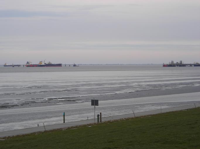 Keywords: Oil pier WHV 2.JPG Oil pier at the Wilhelmshaven Oil Refinery Wilhelmshaven Germany Right side Oil pier loading head; left side Detached loading terminal with tankers berthed to it own 2008-03-23 KuK WRG Tanker Jetty Wilhelmshaven Ships in Wilhelmshaven |