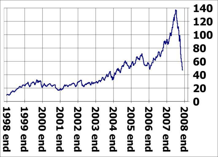 | Keywords: Oil world price from 1998 to 2008 November 21.svg en World oil price from 1999 to 2008 November 21; weekly prices in United States dollars per barrel on the vertical scale with year markers on the horizontal scale I 84user created this work using the excel file pet_pri_wco_k_w xls from the U S Energy Information Administration's web page http //tonto eia doe gov/dnav/pet/pet_pri_wco_k_w htm direct link http //tonto eia doe gov/dnav/pet/xls/pet_pri_wco_k_w xls and using Open Source Gnumeric 1 9 1 to produce the chart 2008-12-03 84user talk None See Licensing below See also thumb left US oil price in dollars from 1999 to 2008-10-17 thumb center US oil price from 1998 to 2008-10-31 thumb left US oil price from 1998 to 2008-11-21 thumb cnter World oil price from 1998 to 2008-11-21 thumb left World oil price in dollars from 1978 to 2008-10-17 log scale thumb center oil world price from 1998 to 2008 October clr SVG economics |