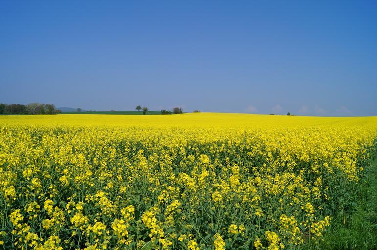 Keywords: oilseed rape field of rapeseeds meadow sky field of flowers landscape view