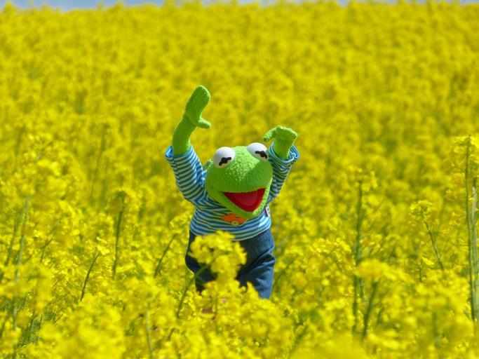 Keywords: oilseed rape field of rapeseeds frog kermit yellow blossom bloom plant rape blossoms crop brassicaceae blütenmeer inflorescence cruciferous plant