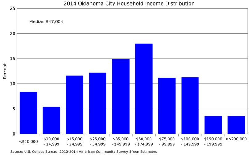 | Keywords: Oklahoma City household income distribution.svg translate yes en Distribution of household income in Oklahoma City Data from http //factfinder census gov/bkmk/table/1 0/en/ACS/14_5YR/DP03/1600000US4055000 US Census in 2014 inflation adjusted dollars 2016-06-02 own Delphi234 other versions cc-zero Income distribution in the United States Oklahoma City |