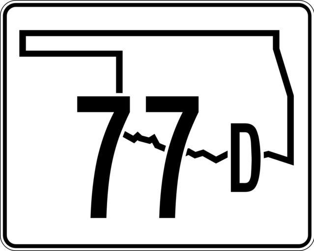 | Keywords: Oklahoma State Highway 77D.svg An Oklahoma State Highway 77D shield made to the specifications of the http //www okladot state ok us/traffic/traffic99/pdfs/t035e pdf sign detail Uses the http //www triskele com/fonts/index html Roadgeek 2005 fonts United States law does not permit the copyrighting of typeface designs and the fonts are meant to be copies of a U S Government-produced work anyway The outside border has a width of 1 1/16 in and a color of black so it shows up; in reality signs have no outside border own 2012-01-31 Fredddie Oklahoma State Highway shields 077D |