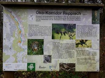 Keywords: Öko Korridor Reppisch.jpg de Öko-Korridor Reppisch nahe Sellenbüren Stallikon own Hubi47 2015-11-03 Reppisch Nature reserves in the canton of Zürich Signs in the canton of Zürich Cc-zero
