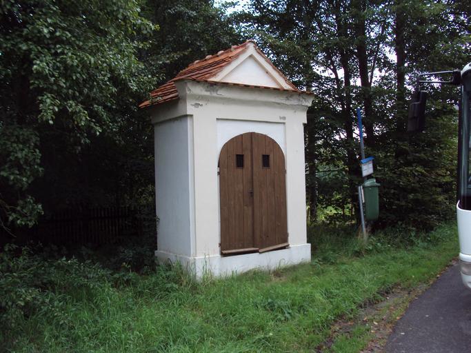Keywords: Okřešice křížek.jpg cs Uzavíratelný křížek metr od bus zastávky Okřešice u České Lípy own Zákupák 2010-08-26 Okřešice Česká Lípa