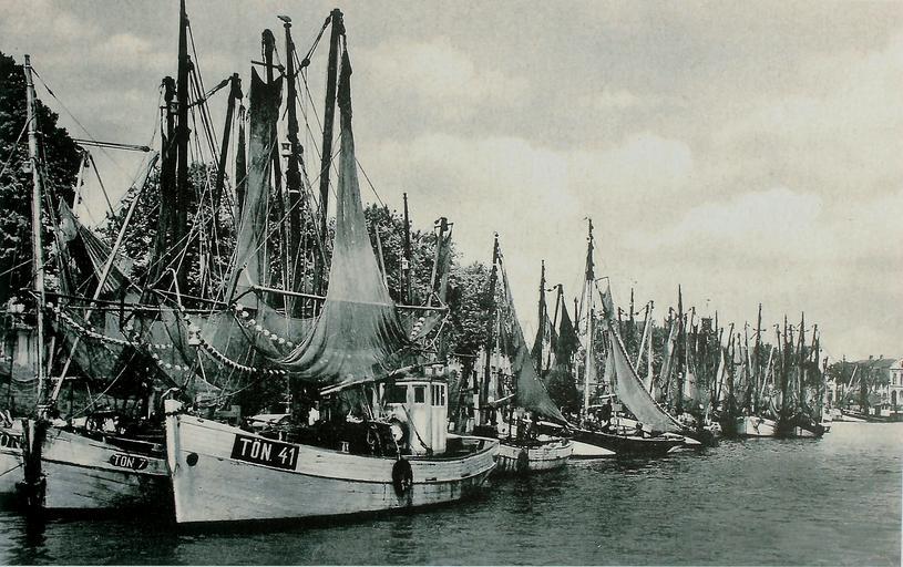 Keywords: old black and white photo old picture sailing boats port tönning past black and white nostalgia eider historically