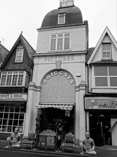 Keywords: herne bay herne bay hernebay cinema blackandwhite monochrome outdoor architecture building black and white Briggsy’s occupies the only purpose built commercial premises for entertainment within the core of the town (other than pubs etc). It was erected about 1899 as the Washington Arcade, running through to Mortimer Street. In 1911 it became the ‘Cinema de Luxe’ and in 1912 was further altered, probably achieving its present form. It has long since ceased to show films. The design involves a central entrance with a ‘feature’ tower above, with, to each side, pairs of steeply gabled two storey houses with shops on the ground floor. All these features survive but in a mutilated condition. The body of the cinema also survives, to the rear. The cinema entrance with its tower and cupola is an important visual ‘incident’ on the High Street. Briggsy’s occupies the only purpose built commercial premises for entertainment within the core of the town (other than pubs etc). It was erected about 1899 as the Washington Arcade, running through to Mortimer Street. In 1911 it became the ‘Cinema de Luxe’ and in 1912 was further altered, probably achieving its present form. It has long since ceased to show films. The design involves a central entrance with a ‘feature’ tower above, with, to each side, pairs of steeply gabled two storey houses with shops on the ground floor. All these features survive but in a mutilated condition. The body of the cinema also survives, to the rear. The cinema entrance with its tower and cupola is an important visual ‘incident’ on the High Street.