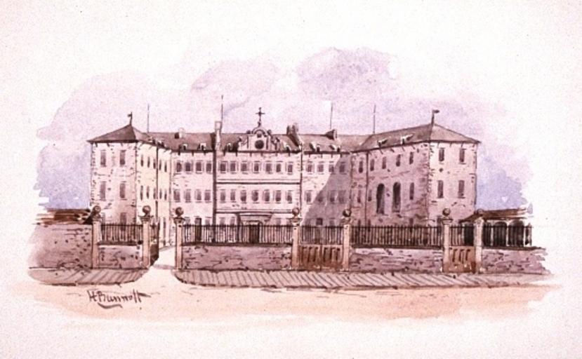 | Keywords: Old College, College Street, Montreal.jpg  en Painting Old College College Street Montreal Watercolour on paper 17 8 x 25 6 cm fr Peinture Le vieux collège rue du Collège Montréal Aquarelle sur papier 17 8 x 25 6 cm<br> « L'artiste Henry R S Bunnett féru d'Histoire se plaisait a reconstituer des scènes mettant en vedette des bâtiments de l'Ancien Montréal déjà disparus de son vivant Vers 1888 il réalisa une série d'aquarelles comme celle-ci représentant l'ancien Collège des Sulpiciens Petit séminaire Bâtiment institutionnel imposant et très ancien il était situé sur la rue du Collège qui n'était qu'une extension de la rue Saint-Paul à l'Ouest des Fortifications Griffintown à proximité d'un site dit Hay Market La Petite rivière Saint-Pierre coulait juste à côté au Sud On voit ici sa façade Nord depuis la rue du Collège avec ses deux ailes disposées symétriquement » “ https //www flickr com/photos/urbexplo/6335843541/in/photolist-aDX8Eu-aEig4v-aDSRxK-cQV4cy-cPDKC7-7BSu1b-dCq3j7-jMDsRc-cPLagy-cQUQhE-cQUFJd-cQUGtm-cQV7p3-cQUS15-cQUPEh-cSJbbL-cSaaoA-cSa9Z3-cSa9yy-cSa999-cSa8Pq-cSa8pN-cSa893-cSa7GJ-cSa7f1-cRwRih-cR9B9E-bqsDjj-cSa6md-cSa5Xq-cSa5ww-cSa56y-cSa4D3-cSa4cA-cSa3G9-cRwTkS-cRwSFY-cRwRMA-cRwQHQ-cRwQ8U-cRwPCf-cRwP5U-cRwN31-cRuLTA-cRwNGu-cSwt1b-cSwsyf-cSwrLo-cSuk4C-cRwU89 flickr com - https //www flickr com/photos/urbexplo/6340605327 plan 1888 M978 71 28 Henry Richard S Bunnett other versions PD-100 Uploaded with UploadWizard Henry Richard S Bunnett Montreal in the 1880s Old Seminary College College Street Montreal |
