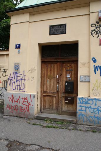 | Keywords: Old Jewish Cemetery in Žižkov, Prague 06.JPG en Old Jewish Cemetery in Žižkov Prague Fibichova street under the TV tower cs Starý židovský hřbitov na Žižkově u TV vysílače own Feťour 2010-06-18 Old Jewish cemetery in Žižkov Jewish cemetery gates Graffiti in Prague |