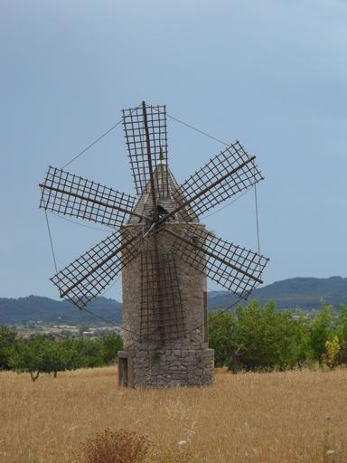 Keywords: old mill windmill landmark mallorca historically mill building wing stony fields agriculture