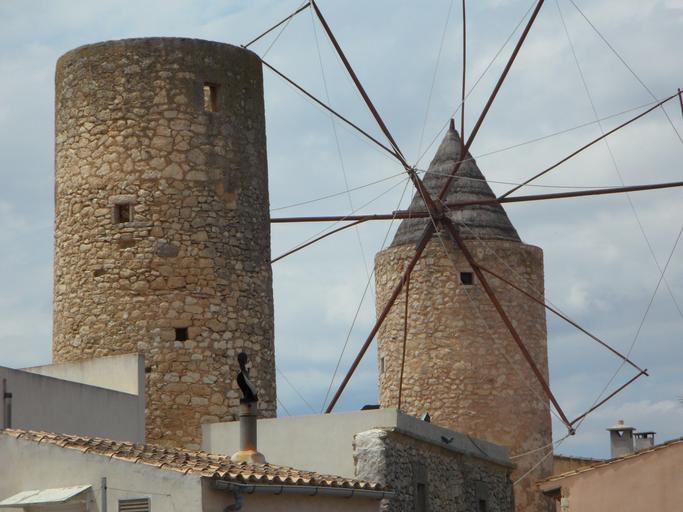 Keywords: old old mill windmill landmark mallorca historically linkage mill building wing stony wind energy sky mediterranean tower two