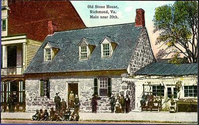 | Keywords: vcu libraries vculibraries vcu digital collections vcudigitalcollections outdoor building architecture Description: No. 23, Old Stone House, (Main near Twentieth) Richmond, Va. This venerable building, with its weatherworn walls of stone boulders, is reputed to be the oldest in the city, it having been erected (probably in 1737) by Jacob Ege, a German immigrant in whose family it remained for several generations. In the course of the time many interesting legends have gathered around its ancient walls. Thus the yard in the rear of the building is said to contain a number of Indian graves. It is also said to have occupied by Gen'l Geo. Washington as his headquarters on occasion. And one of its upper rooms, it is claimed, was used by Patrick Henry as a law office. It is now owned and maintained by the Ass'n for the Preservation of Virginian Antiquities. Manufacturer: Louis Kaufmann & Sons, Baltimore, MD. Date Postmarked: Not postmarked. Rights: This item is in the public domain. Acknowledgement of the Virginia Commonwealth University Libraries as a source is requested. Reference URL: dig.library.vcu.edu/u?/postcard,47 Collection: Rarely Seen Richmond: Early twentieth century Richmond as seen through vintage postcards Description: No. 23, Old Stone House, (Main near Twentieth) Richmond, Va. This venerable building, with its weatherworn walls of stone boulders, is reputed to be the oldest in the city, it having been erected (probably in 1737) by Jacob Ege, a German immigrant in whose family it remained for several generations. In the course of the time many interesting legends have gathered around its ancient walls. Thus the yard in the rear of the building is said to contain a number of Indian graves. It is also said to have occupied by Gen'l Geo. Washington as his headquarters on occasion. And one of its upper rooms, it is claimed, was used by Patrick Henry as a law office. It is now owned and maintained by the Ass'n for the Preservation of Virginian Antiquities. Manufacturer: Louis Kaufmann & Sons, Baltimore, MD. Date Postmarked: Not postmarked. Rights: This item is in the public domain. Acknowledgement of the Virginia Commonwealth University Libraries as a source is requested. Reference URL: dig.library.vcu.edu/u?/postcard,47 Collection: Rarely Seen Richmond: Early twentieth century Richmond as seen through vintage postcards |